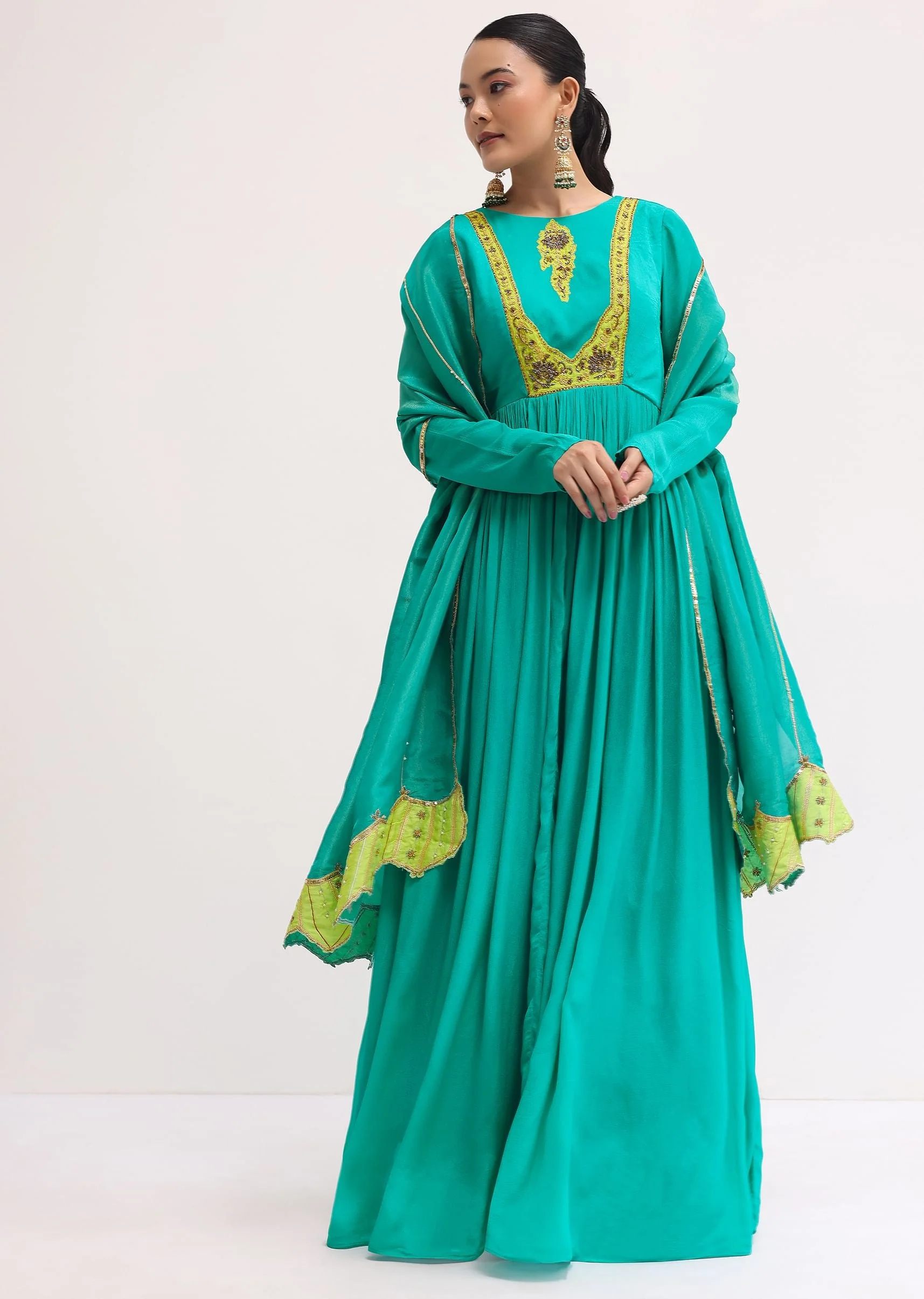Aqua Green Chiffon Anarkali With Tissue Dupatta