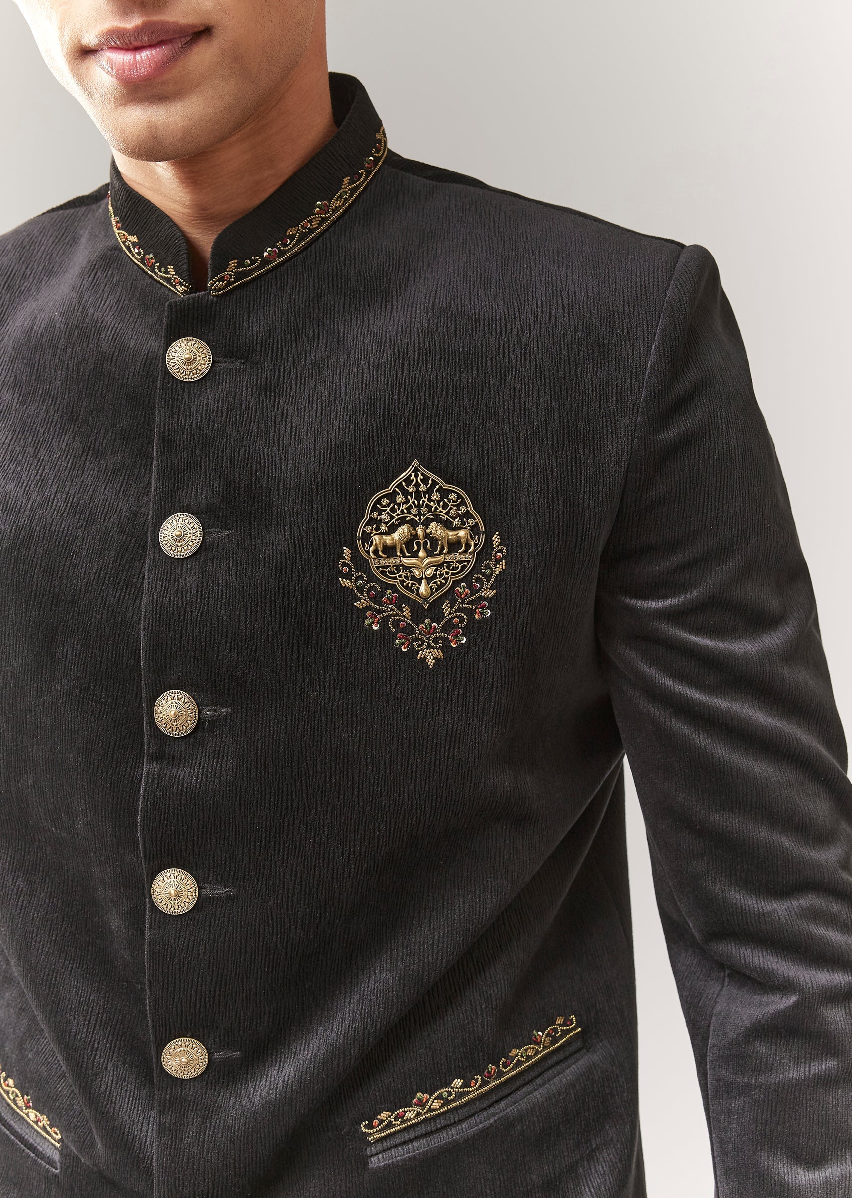 Black Velvet Jodhpuri With Metal And Resham Detailing