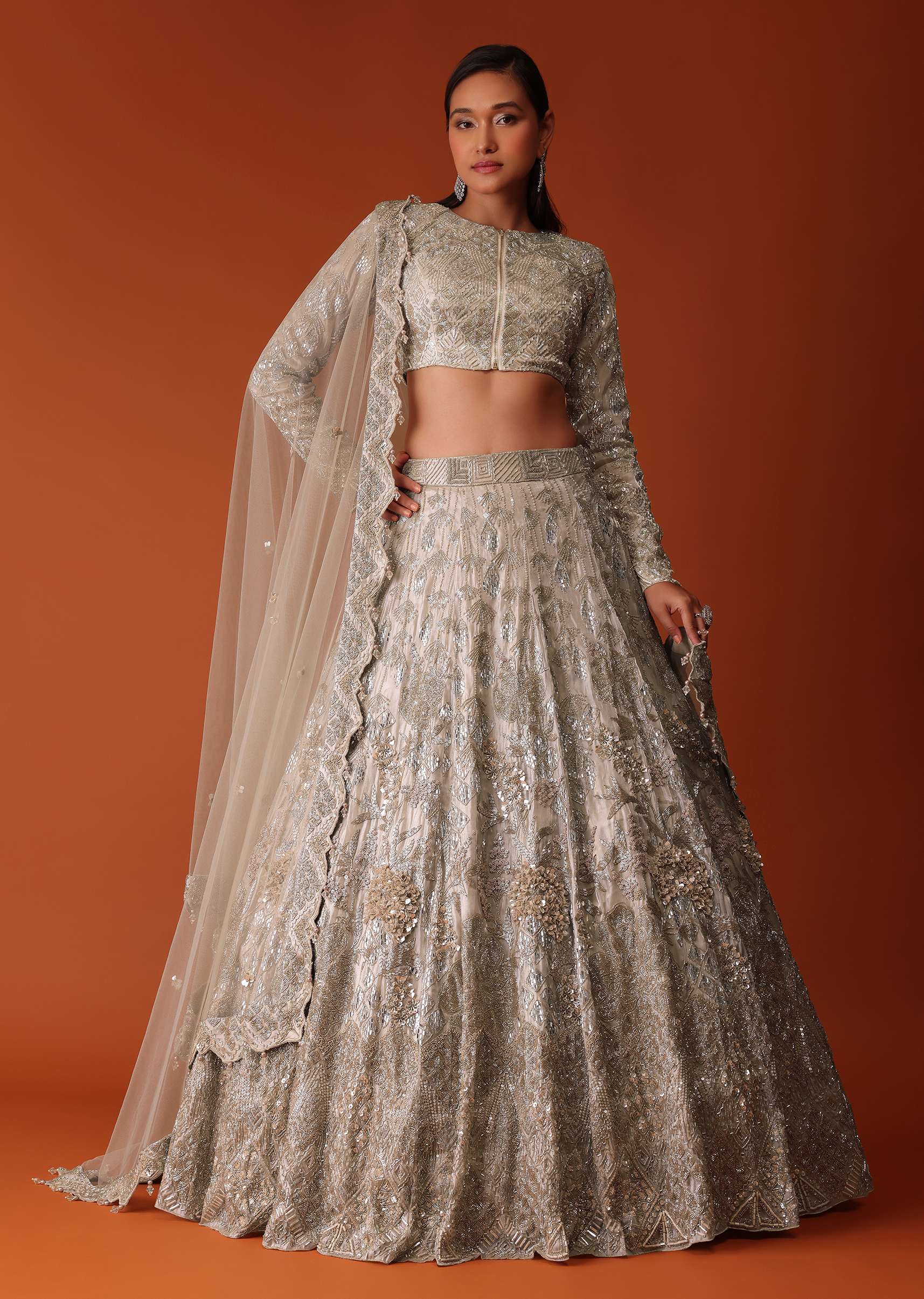 Introducing our opulent gold-toned heavy hand embroidered bridal lehenga set in organza, a true masterpiece that exudes luxury and sophistication. This captivating ensemble features intricate embroidery in sequins, pearls, and cutdana. The full sleeves blouse with a front zip closure adds a touch of contemporary chic, while the high neckline enhances your allure. Paired with a delicate net dupatta, this set exudes elegance and ensures you stand out with timeless allure on your special day. Awarded As The Most Trusted Brand We'Re Delivering Styles You Love Just As Promised.