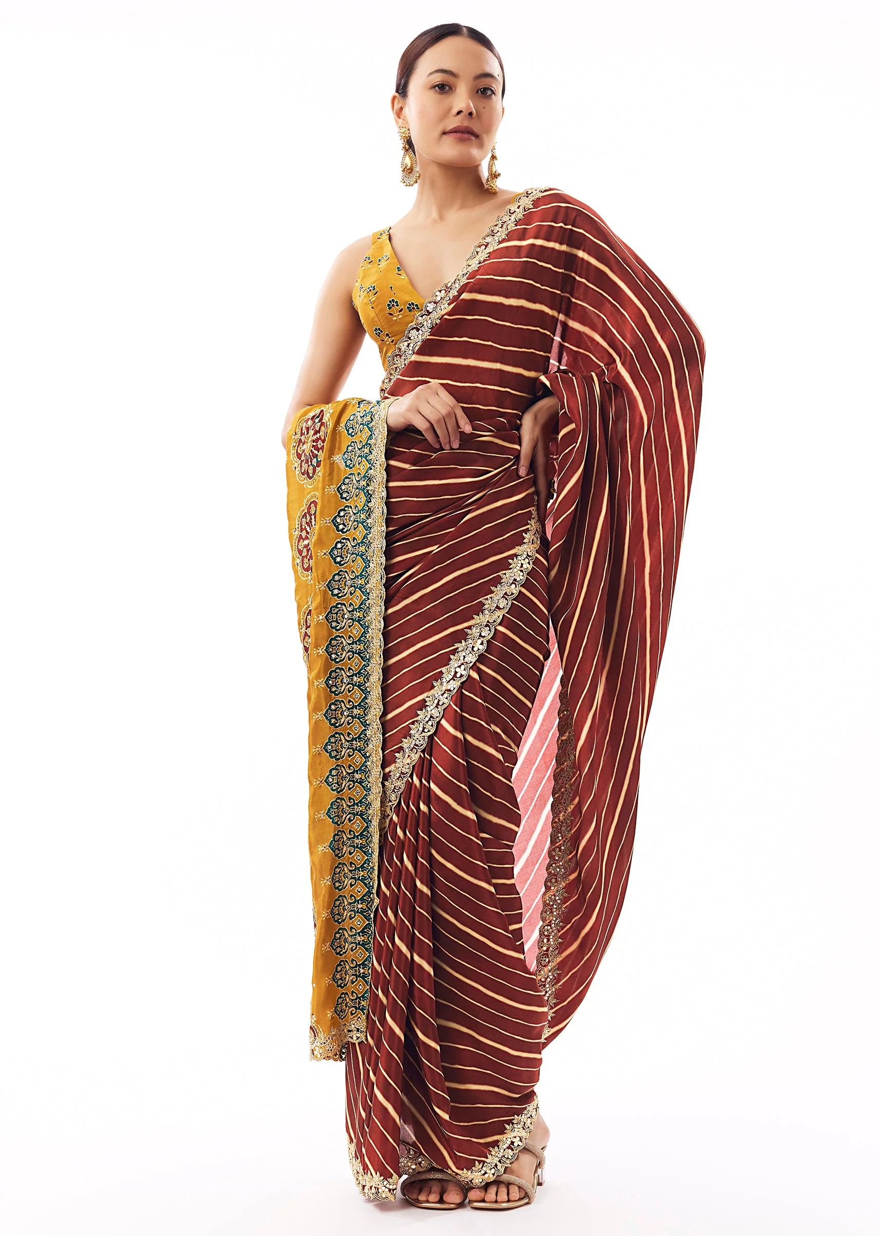Maroon Lehariya Crepe Saree With Scalloped Gotta Work Border
