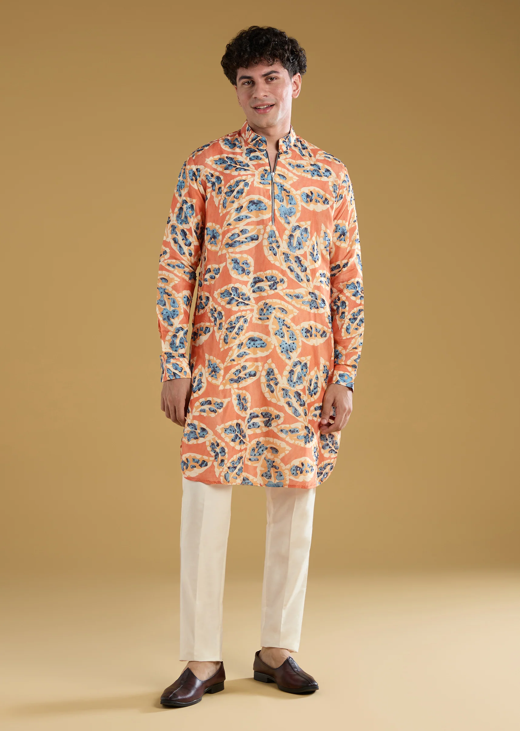 Rust Orange Silk Zipper Kurta Set